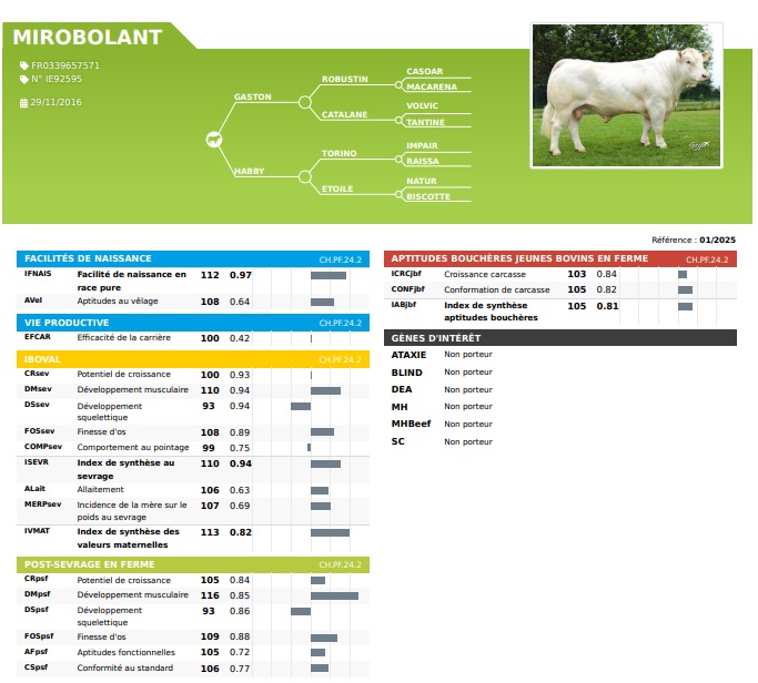 Ce veau né le 07/12, fils de "Mirobolant" assurera la facilité aux vêlages sur les génisses vu ses index !